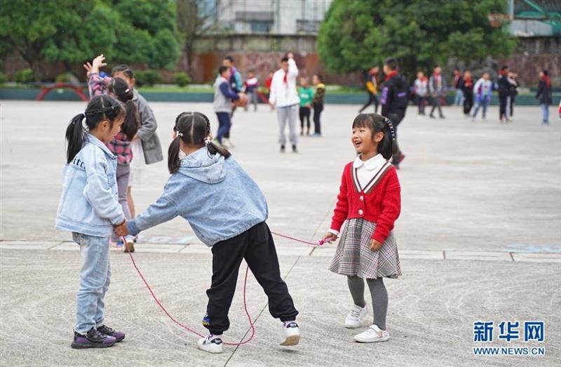 图为午餐后,鹤峰县太平镇贺龙希望小学的学生们在操场玩耍。新华网 吴文华摄