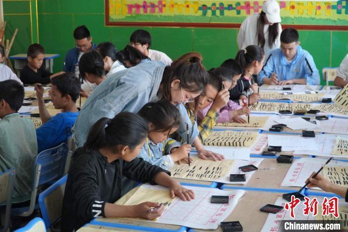 2020年暑假期间,西北师范大学志愿者在县(区)学校开展体育美育普及活动。(资料图) 王玉丰 摄
