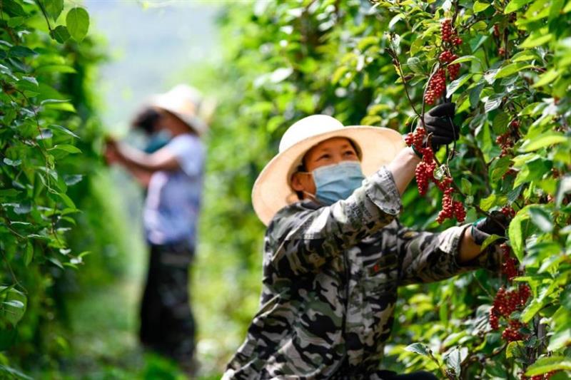 河北省唐山市丰润区农民正在采摘五味子。(唐山市丰润区委宣传部供图)