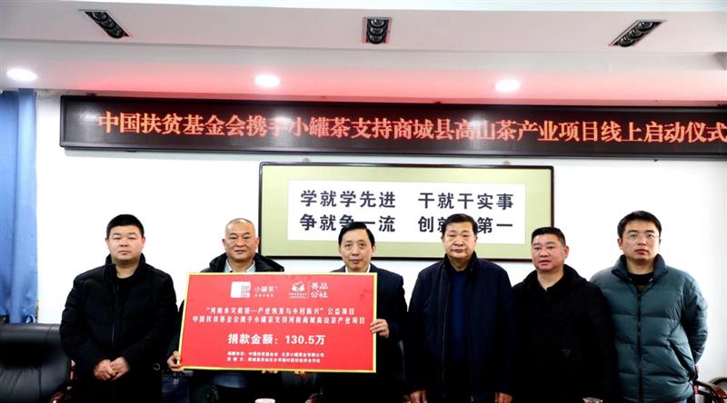 2021年,河南暴雨,“全国重点产茶县”商城县大片茶园被毁,居民损失惨重。北京小罐茶业有限公司积极响应,捐赠款物达500万元,支援水灾救援和灾后重建工作。2022年1月,对灾区复建工作深入了解后,小罐茶联合中国乡村发展基金会(原中国扶贫基金会),正式启动了为期3年的河南水灾救援——商城县高山茶产业灾后恢复与振兴项目,发挥小罐茶在茶叶人才培养、生产制作、品牌建设方面的优势经验,结合当地高山茶产业特点,体系化助力当地茶叶产业发展和农户的稳定增收。