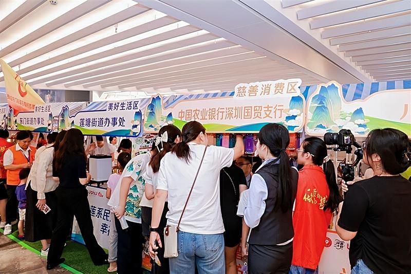 在慈善消费区,有爱心商家提供的丰富商品和慈善优惠。市民可以品尝和购买来自罗湖对口帮扶的广西隆林、广西西林和广东潮州的扶贫产品,可以尽情购买地王观光的文创产品、源兴果品的当季水果、跨乐服装的深圳校服、星银凯雅的护肤品、八马的茶叶和茶点、金活医药的健康产品、华润万家的饮品饮料等,让市民尽情享受购物淘宝小乐趣的同时,也能为罗湖慈善事业贡献一份力量。现场还可以向农业银行了解金融知识和数字人民币使用方法等。