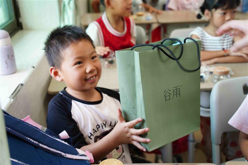 活动当日,谷雨还为全校小朋友准备了开学文具礼包、为老师们准备了护肤品礼袋,这一举措不仅体现了谷雨履行社会责任、关爱儿童成长、关怀一线劳动者的承诺,同时更向社会传递了品牌对教育和环境的深刻关注。
