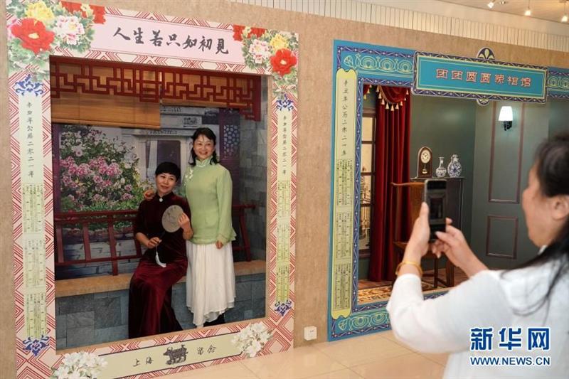 1月30日,市民在海上年俗风情展上拍摄老上海风情的团圆照。新华社记者 任珑 摄
