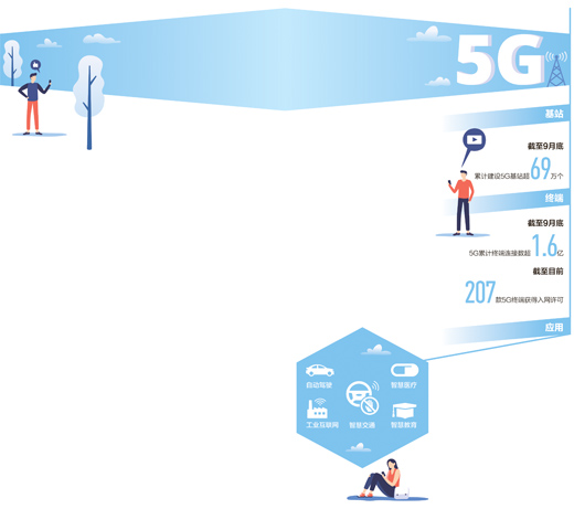 5G基站超69万个、终端连接数超1.6亿……一年前的10月31日,以三大运营商推出5G套餐为标志,我国5G正式商用。一年的时间里,我国信息通信业交出了一份亮眼的5G答卷。