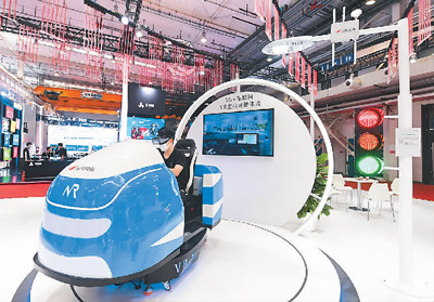 参观者在2021世界5G大会展览现场体验5G+车联网VR虚拟驾驶。 新华社记者 任 超摄