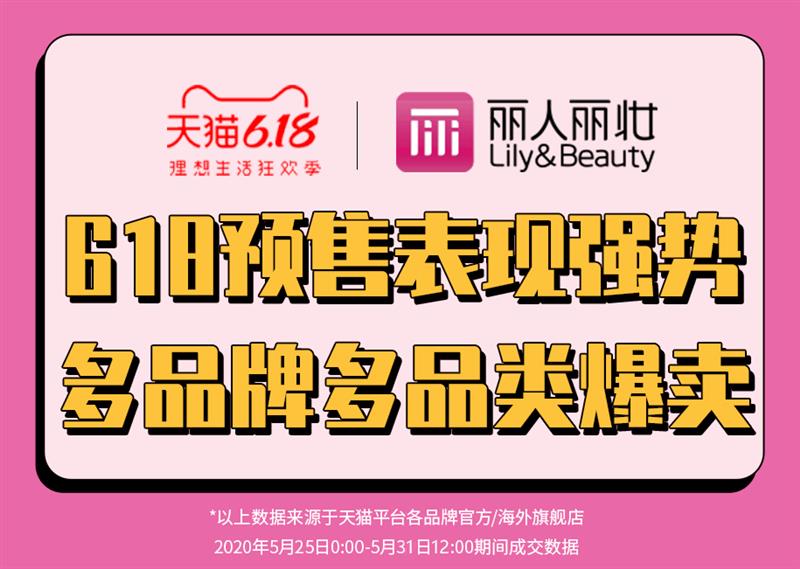 截止至5月31日12:00时,丽人丽妆多品牌在多品类销售中均呈现大幅增长,在天猫618预售阶段均名列前茅!