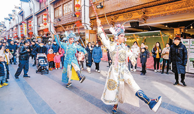 近日,浙江省湖州市长兴县太湖图影旅游度假区太湖古镇推出多场融合舞蹈、戏曲、街头艺术等元素的“国潮”街艺表演,吸引不少年轻消费者驻足观看、体验。 |