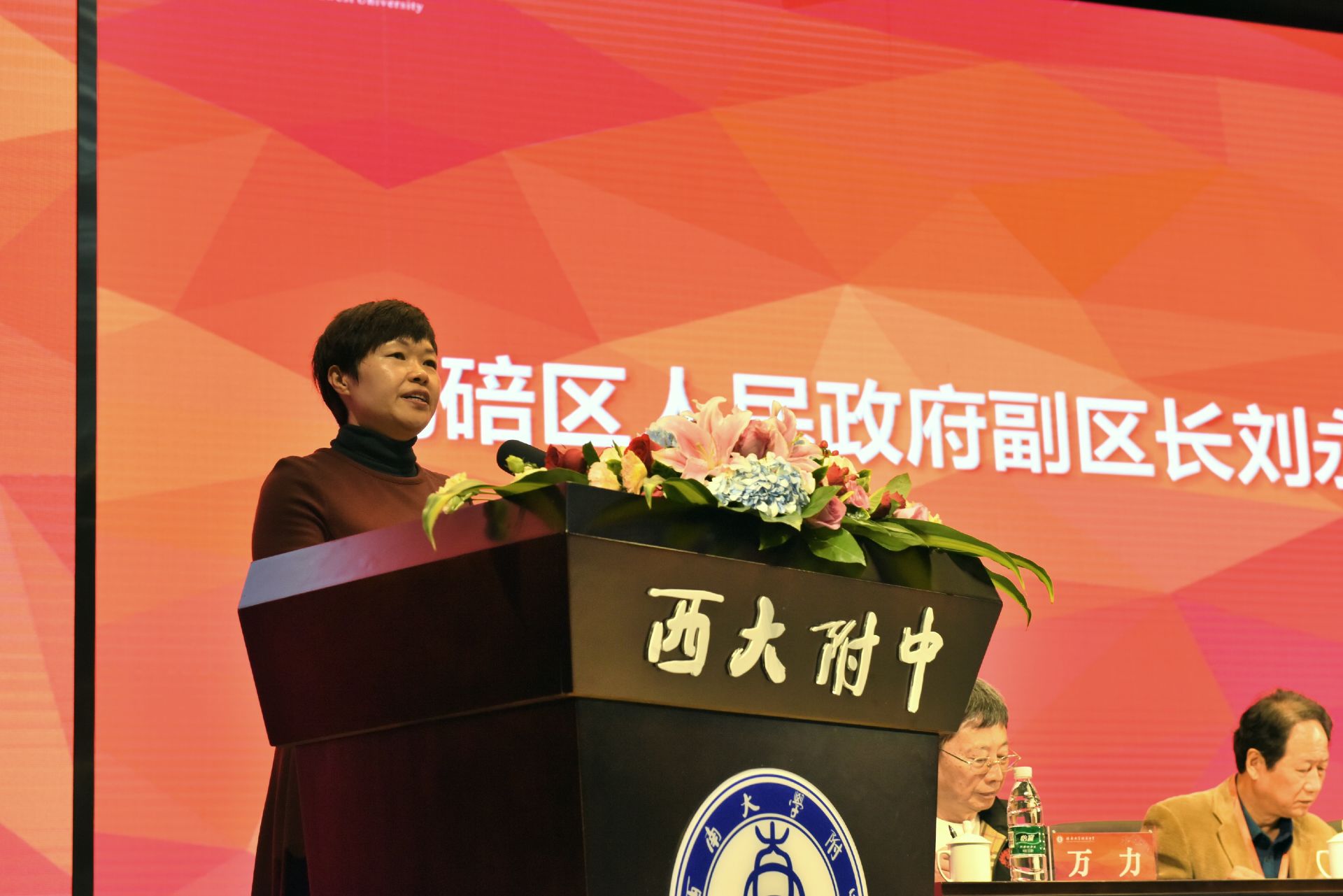北碚区人民政府副区长刘永致辞,她以卢作孚先生教育救国的教育情怀和理念为引,介绍了北碚区教育在赓续传承中取得的教育成果,希望借此次大会,北碚教育工作者向兄弟单位学习,百尺竿头,更上一步。