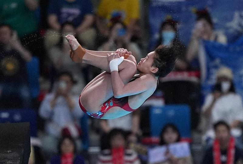 4月21日,全红婵在比赛中。新华社记者 李一博 摄