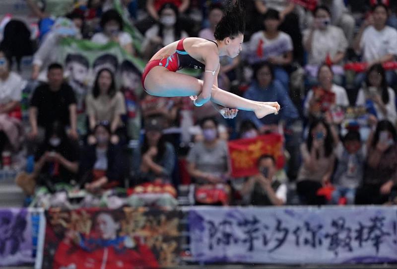 4月21日,陈芋汐在比赛中。新华社记者 张博文 摄