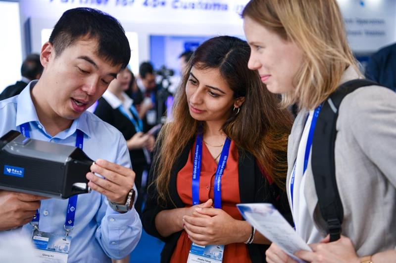 5月8日,嘉宾在第六届全球AEO大会中国海关展台了解手持式再生金属分析仪。新华社记者 梁旭 摄