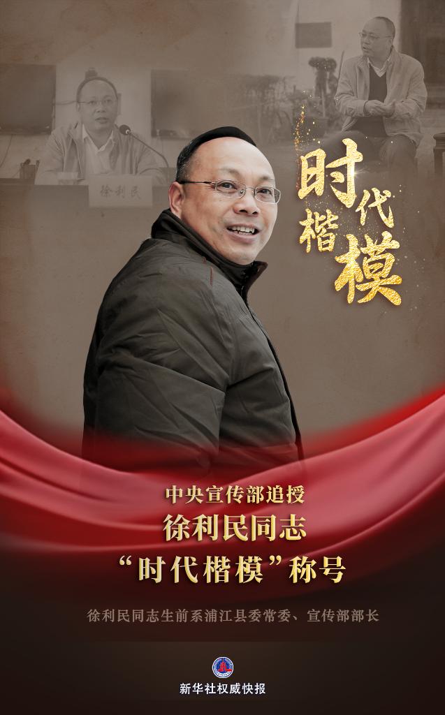 新华社北京6月19日电 在全党全国各族人民深入学习贯彻习近平新时代中国特色社会主义思想和党的二十大精神,奋力建设社会主义文化强国、建设中华民族现代文明之际,中央宣传部向全社会宣传发布徐利民同志先进事迹,追授他“时代楷模”称号。