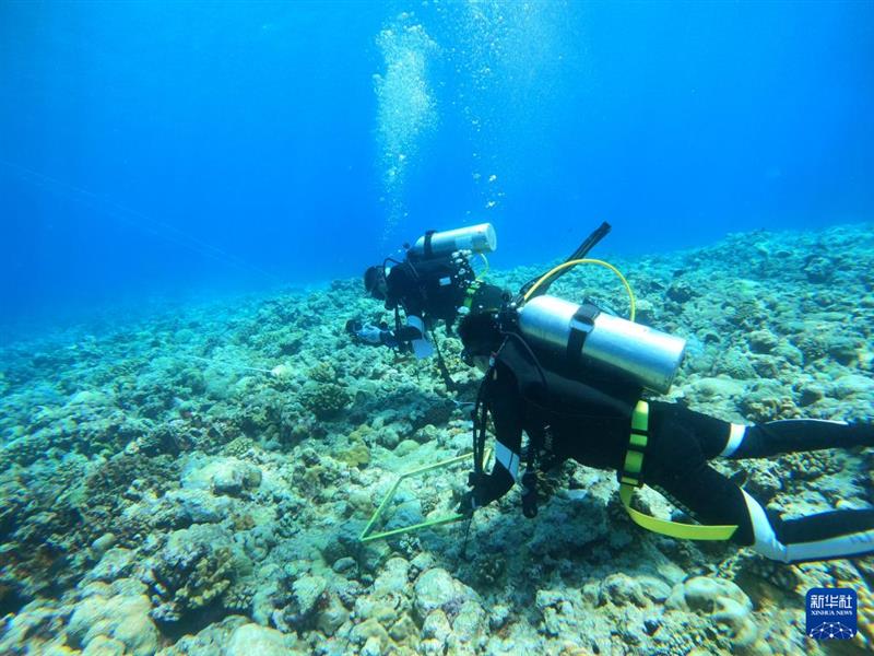 这是2024年黄岩岛海域生态环境状况调查的水下作业。新华社发