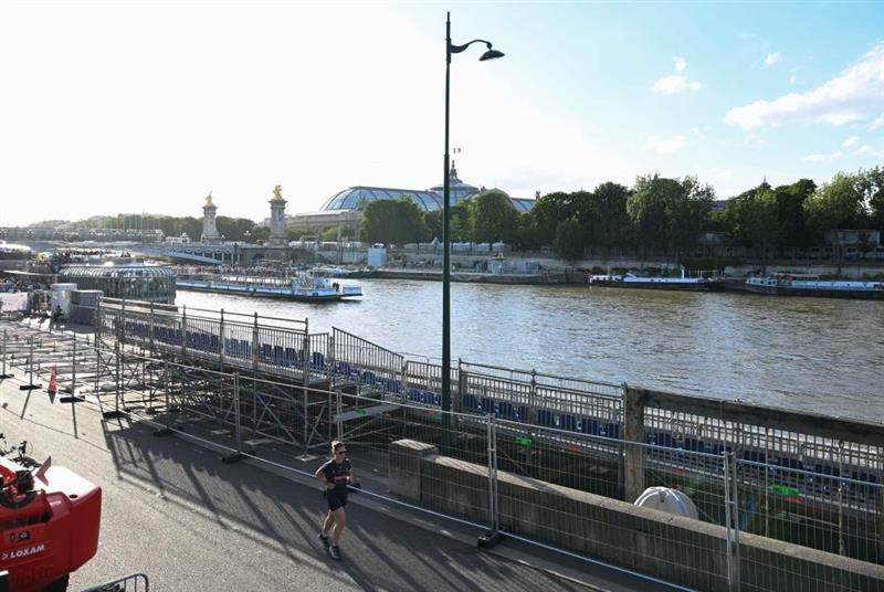 这是塞纳河畔的开幕式看台(7月4日摄)。新华社记者 贺长山 摄