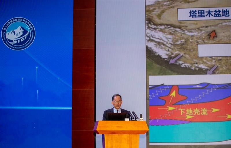 8月18日,第二次青藏科考队队长姚檀栋院士在拉萨对本次科考十大任务的重要成果进行集中发布。新华社记者 姜帆 摄