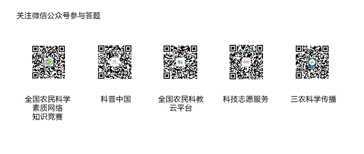 同时关注“全国农业科教云平台”“三农科学传播”“科普中国”“科技志愿服务”微信公众号也可参与答题。