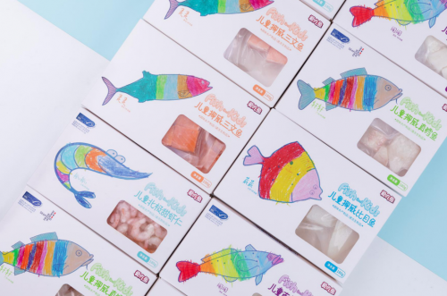 例如在儿童系列产品的包装设计上,当前市面上的辅食多以大包装为主,这也意味着妈妈们在准备辅食时要反复解冻,并不利于食材的卫生与宝贝的健康。为解决这一难题,“爱吃鱼”独具贴心设计,独立小包装满足儿童每日营养需求,不隔夜、不隔顿,保证食材卫生无菌,解冻也更快捷,让妈妈们更省时。此外儿童系列产品的外包装来源于小朋友的涂画产品,从众多绘画作品中让爱吃鱼的宝宝们选择最喜欢的样式。