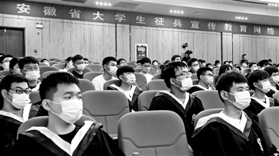 近日,安徽省军区领导围绕“国家兴亡匹夫有责,携笔从戎不负韶华”主题,为该省在校大学生进行征兵网络宣讲。阮若水摄