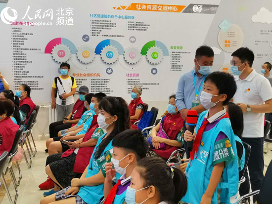 小志愿者为居民讲解垃圾分类知识。人民网记者 高星 摄