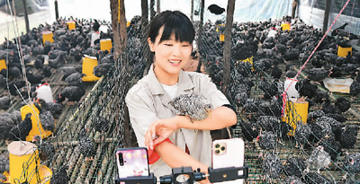 陕西省商洛市丹凤县寺坪镇寺坪村村民李萌在网上介绍自己家养的芦花鸡。