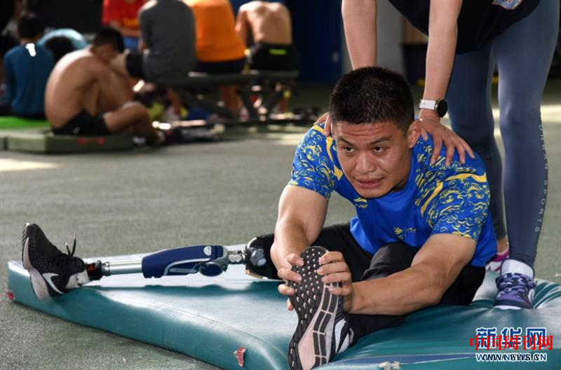 训前拉伸、慢跑热身、专项训练、力量辅助……在教练吴艳英的指导和辅助下,青岛市残疾人体育中心田径队队员李茂大先是进行了充分热身,然后进行了专项短跑训练和力量辅助训练。虽然穿着假肢,但李茂大动作标准,热身到位,发力精准,一套假肢和他的身体融为一体。