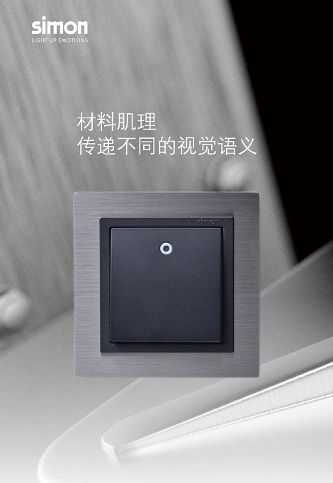 新材料的应用,是打破传统的再创造。Simon打破了一直以来仅采用PC材料的陈规,将不同肌理的新材料应用于开关,唤醒墙面空间与众不同的气质。