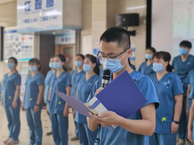 全体治疗师在刘宇航带领下做郑重宣誓,康复治疗师代表王楠做了表态发言。