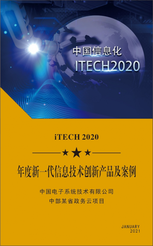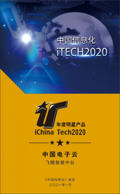 2021年1月17日,由工信部电子工业出版社华信研究院、中国智能制造百人会主办“匠心智造,引领未来”“中国信息化iTECH 2020年会暨中国智能制造百人会2021年会”成功举办。中国电子云飞瞰数据中台在大会上获评“iTECH 2020”年度明星产品奖,由中国电子系统技术有限公司承建的某省政务云项目获评“年度新一代信息技术创新案例”。
