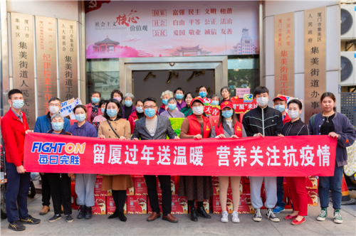 元旦刚过,多地疫情零星散发,为切实做好春节期间疫情防控工作,多地发出“非必要不返乡”的提倡,“就地过年”成为不少民众的防疫选择,而城市一线工作者肩上的责任更加重大,为了给坚守在岗位的城市一线工作者送去慰问和关怀,感谢他们的辛劳付出,新春佳节来临之际,佳格集团响应厦门市委、市政府提出的“爱心厦门”建设,携旗下品牌“每日完胜”积极参与厦门广播开展的“新春送温暖”活动,向城市传递佳格真情,分享佳格温度。