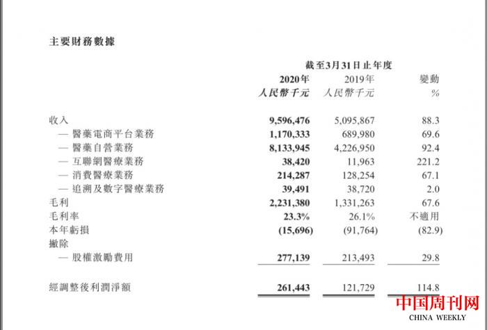 原标题:阿里健康2020财年净利同比增114.8% 互联网医疗服务收入大涨221.2%