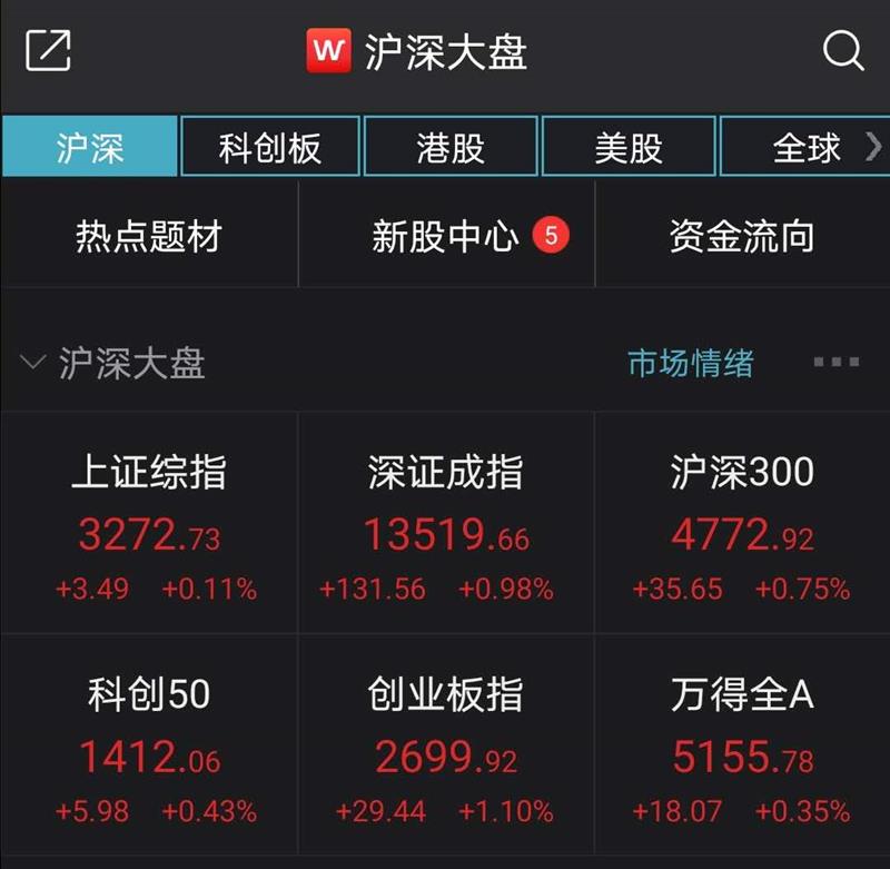 A股低开高走:创指涨1.1%,医药板块表现强势