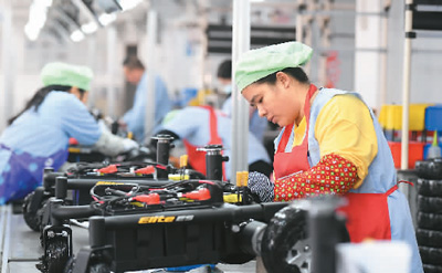 近年来,江西省丰城市积极引导企业加大科技创新、优化生产工艺,不断提高产能和产品竞争力,发展形势持续向好。图为近日当地一企业员工在赶制出口欧美国家的电动轮椅等产品。周 亮摄(人民视觉)
