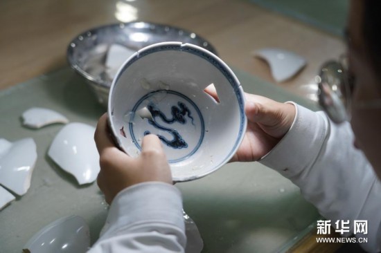 这是在景德镇御窑博物院修复部拍摄的一件被修复的瓷碗(12月2日摄)。新华社记者 周密 摄