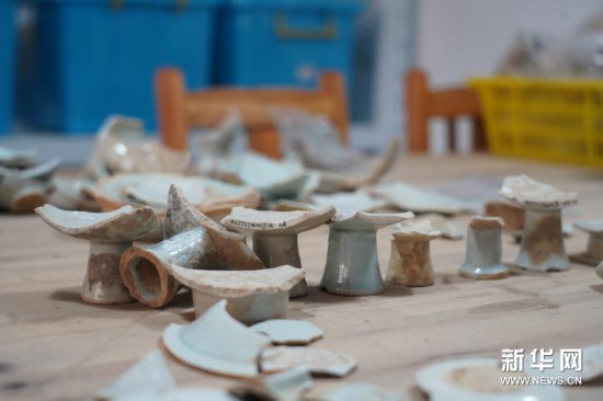 这是在御窑博物院修复部工作室里拍摄的瓷片,瓷片断面上标了详细的编号(12月3日摄)。新华社记者 周密 摄