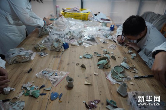 工作人员在御窑博物院修复部工作室里整理御窑瓷片(12月3日摄)。新华社记者 周密 摄