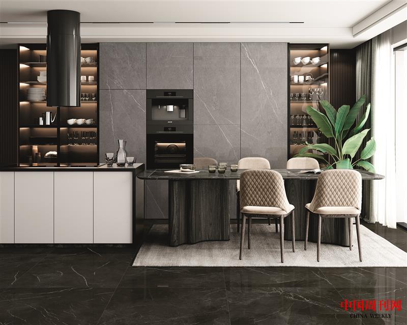“岩板最大的差异就是它的实用性,陶瓷实用有限制,但是岩板应用非常广,家具也好、定制也好,包括建筑等,岩板遍布所有的空间。岩板和陶瓷最大的区别是它比陶瓷在家具装饰上的体验感更好。岩板的釉面、花色、设计要求很高,岩板的诞生,是陶瓷行业的发展进步,这个发展进步是全方位的。在压机设备上,原来陶瓷行业用的是八千吨、一万吨的压机,岩板大的用的压机是一万六,目前国内某个企业已经用了。原来我们的压机大概是一万吨左右,现在则制造除了三万多四万多吨的压机,岩板在整个设备水平上有了非常大的提升,有很多手段和手法来使岩板的表面花色变得更丰富。3毫米很薄,加工性能有非常高的要求,把如此薄的产品经过越来越丰富的工艺,把它变成更加优秀的一个饰面材料,这需要技术含量。岩板风口的爆发,是陶瓷卫浴行业在设计、工艺、材料上的一种很大的进步。”