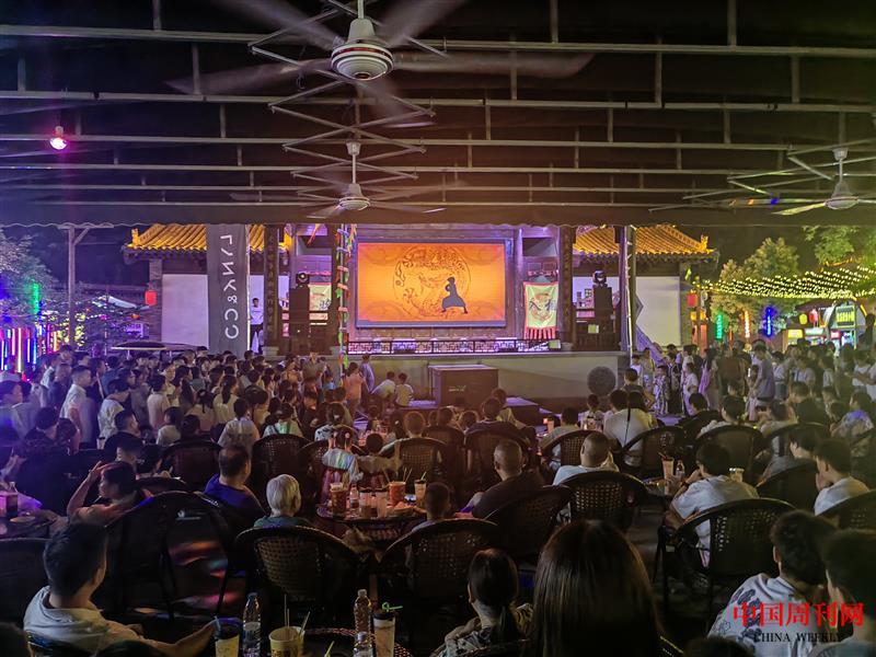 “逛”“吃”“买”三不误,特别是几百家特色小吃,总有几家能勾起你的味蕾,一路走来,大饱眼福,也大饱口福。一些商家在规范有序的前提下,采取店铺外摆、露天市场等方式进行经营,游客们惬意地吹晚风撸串,喝啤酒听曲,看演出拍视频,觥筹交错之间,烟火升腾,音乐喧嚣……