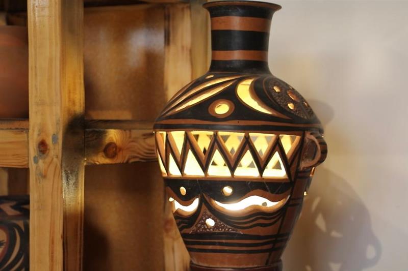 马黑麦制作的彩陶灯。新华社记者马莎摄