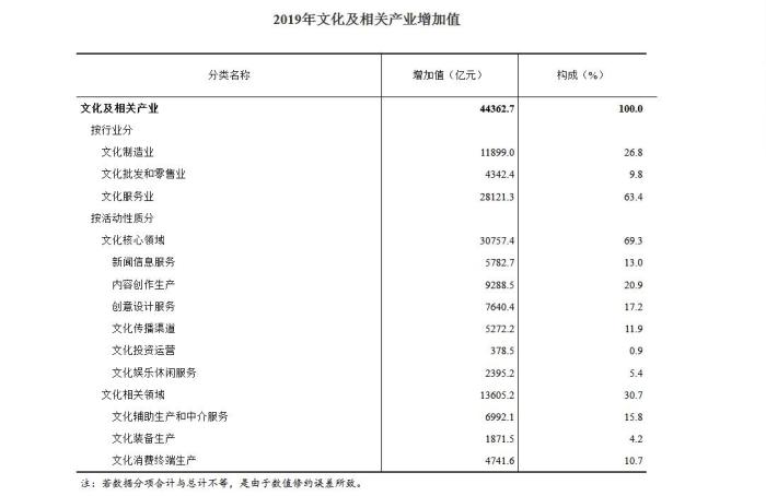 2019年全国文化及相关产业增加值占GDP比重为4.5%
