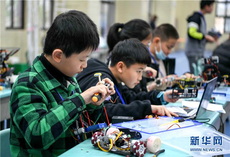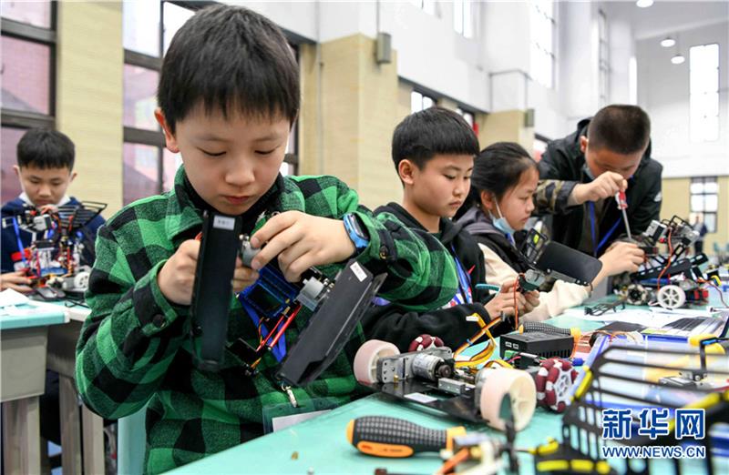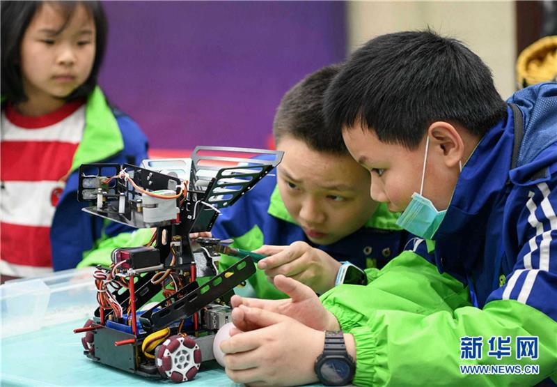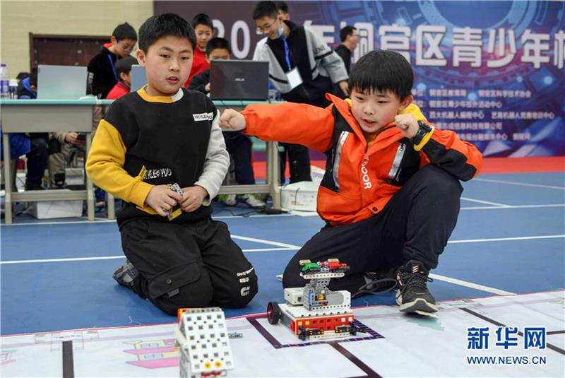 3月27日,安徽省铜陵市铜官区教育局、科协联合举办青少年机器人竞赛,激发青少年对及机器人运用的兴趣。来自铜官区各中小学的75支代表队、140名选手参加了比赛,选手们在动手动脑、协同作战中,培养了创新精神,提高了动手能力。 新华网发(过仕宁 摄)