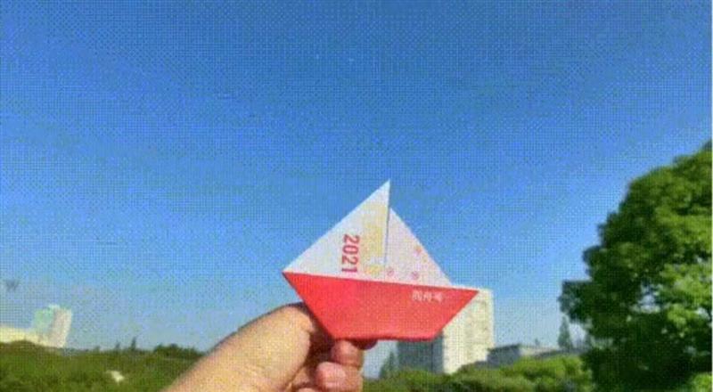 打开宝盒的封面是一枚同济大学的校标,也可以用作冰箱贴,取下校标后还藏着一份“造船指南”。根据“指南”的指示可将纸折成一艘船,“同舟号”“共济号”“梦想号”意为托起梦想的风帆。
