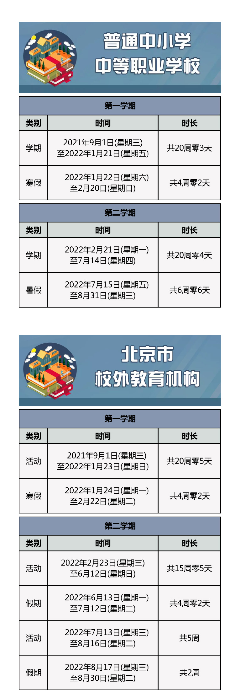 北京各类学校2022年寒暑假时间确定!同学,快来查收你的新校历