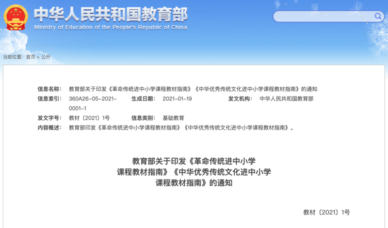 教育部:科学安排中华优秀传统文化和革命传统进中小学课程教材