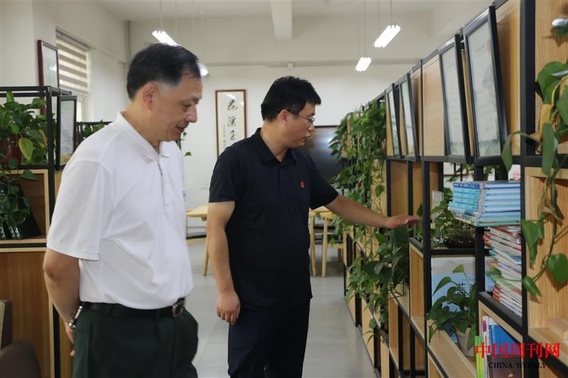 检查组参观西安高新第二学校图书馆,了解学校的校园文化建设。