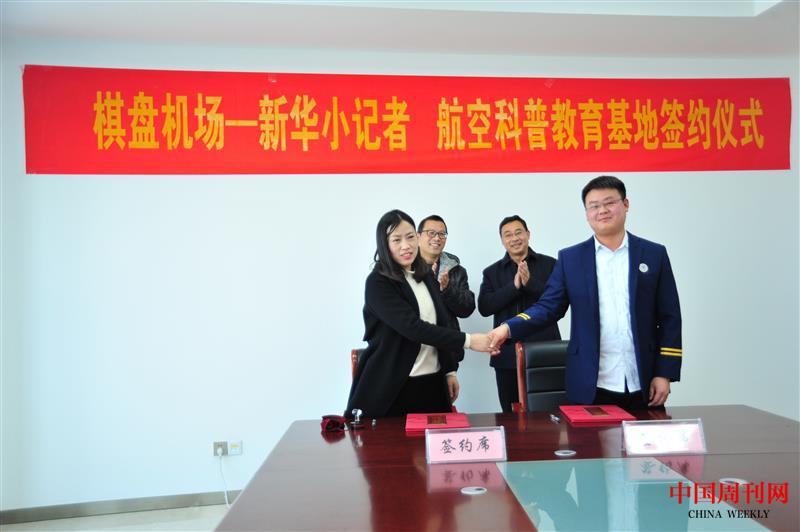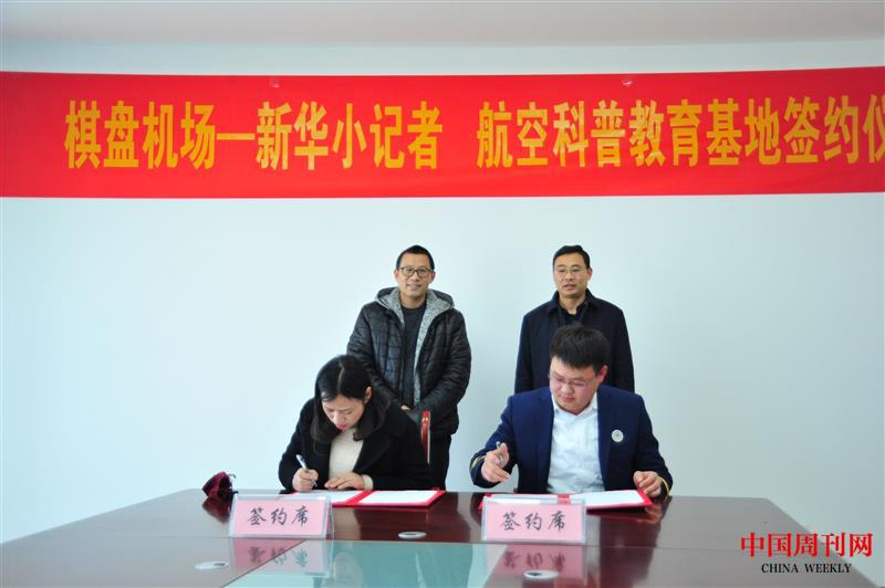 新沂棋盘机场与宿迁新华小记者举行航空科普基地签约仪式