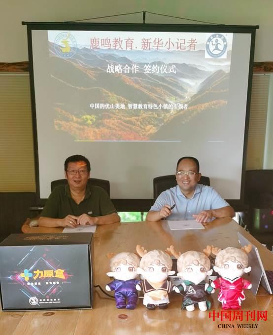 8月6日,鹿鸣教育董事会主席张东晖与新华小记者全国组委会主任万政东在北京密云鹿鸣山居会议室签订战略合作协议。