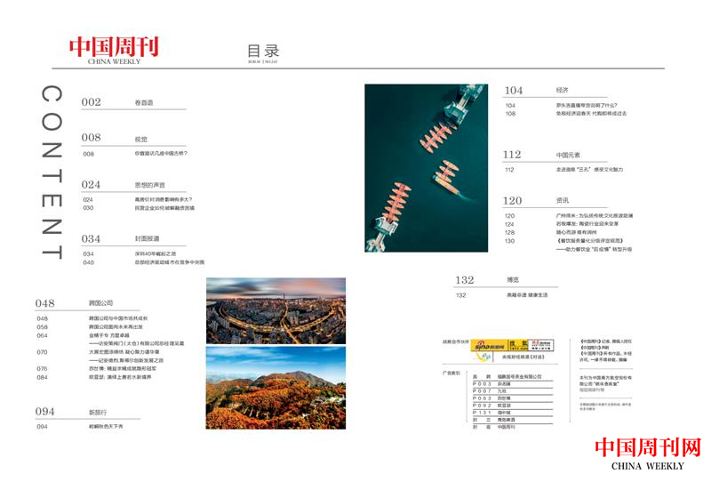 中国坚持对外开放,是向世界发出的最坚定的信号。本期《中国周刊》推出一组跨国公司的专题报道,聚焦国内主要城市总部经济,通过安策阀门、安德烈斯蒂尔、苏世博、欧亚瑟等跨国公司的本土化发展,管窥跨国公司在中国的成长轨迹,展现中国对外开放取得的巨大成就。中国特色社会主义进入新时代,对外开放也进入了新时代。站在新时代,中国推动更高水平开放的脚步不会停滞!中国推动建设开放型世界经济的脚步不会停滞!中国推动构建人类命运共同体的脚步不会停滞!疫情过后,一个新的全球化浪潮必将势不可挡。(文/李莉)