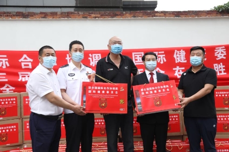 中国廉政法纪网北京讯(记者胡杨)2020年5月29日,联合国国际合作协调局国际健康委员会筹委会主席馬銘俊、中共中央宣部新闻出版局原副局长张凡、国际健康委员会筹委会国际品牌部部长余尚坤、国际健康委员会筹委会信息部副部长、国际健康委员会筹委会艺术部副部长、国际健康委员会筹委会国际安保一部成员等一行9人来到北京铁路公安局,向铁路公安干警捐赠抗疫物资。联合国国际合作协调局国际健康委员会筹委会副主席(原国家副主席王震生活秘书)厉恩海、联合国国际合作协调局国际健康委员会筹委会国际对外联络部部长黄晓君致电向公安干警致敬。中国齐心集团、中开坚固(北京)有限责任公司、本溪华道旗生态农业有限公司等企业向坚守岗位的公安干警捐赠了口罩、消毒液等防疫物资。国礼山水画家张兴峰向公安干警捐赠了山水画。