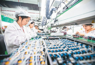 去年以来,江苏省海安市对外资和外贸企业精准施策,保障产业链供应链运转通畅,帮助企业增信心渡难关。图为位于海安经济技术开发区的外资企业西蒙奇通电气海安生产基地内,工人们正在生产供应东南亚市场的电气产品。 |