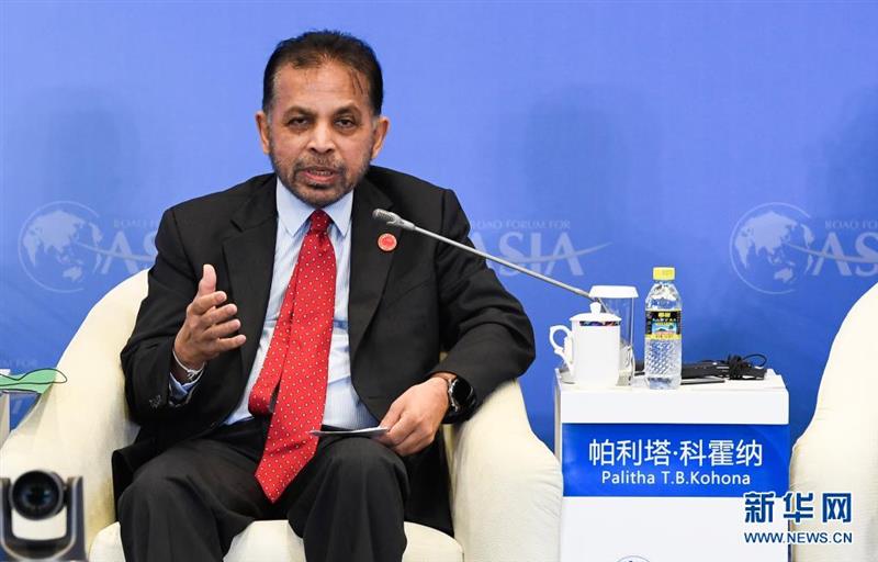 4月19日,斯里兰卡驻华大使帕利塔·科霍纳在“21世纪海上丝绸之路岛屿经济”分论坛上发言。新华社记者 杨冠宇 摄
